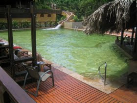 In the somewhat crappy five-year-old photo: The hot-spring-fed swimming pool at Tabacón Resport, near the base of the Arenal Volcano in northern Costa Rica. From our honeymoon. Going down the water slide and swimming across to the bar in one smooth motion fulfilled a life goal. Never mind what we drank. In the future, all bars will be swim-up bars.