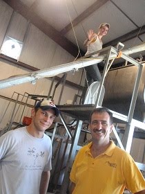 The guy making that beer--and the one who deserves most of the credit for that GABF gold--is head brewer Shawn Herrin. He's there in the photo, on the left, next to Terry Heisler on the right. Up yonder there is 21-year-old assistant brewer Kate Crombie, doing all the hard work with the shovel.Herrin also is overseeing a relatively new barrel-aging program. When I visited there was some Tripel and the Hyde Park Stout maturing in Chambourcin wine barrels from the nearby Blumenhof winery. Meanwhile, this is an area that grows a lot of corn, soybeans and pigs. You want to talk about farmhouse brewing? It might be in a warehouse, but Augusta is using some old dairy tanks as fermenters. "I've had people tell us that our Belgian-style beers taste more Belgian than others," Herrin said. "I think it might be because of the antiquated setup."