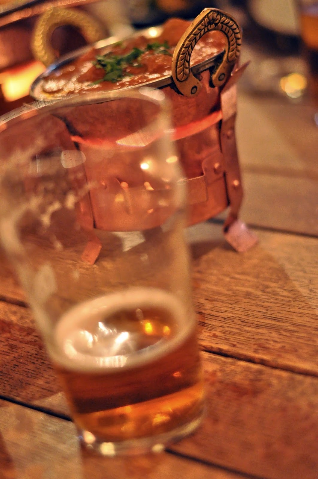 We drank a summer seasonal. The Beachcomber, maybe? To be honest we had been at the Great British Beer Festival all day. We were not qualified to judge it. The curry disappeared as if it were ambrosia. Cultural experience, that's the point.