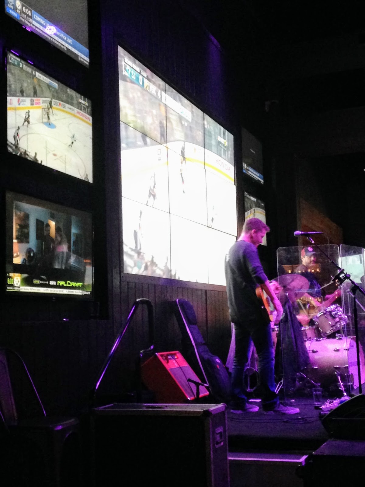 The bar is loud. There are gigantic TVs everywhere, the beer is tongue-numblingly cold with no foam of which to speak, and everyone is so gregariously friendly that it creeps me out at first, but it's OK because I can't hear them anyway. The bar is loud.